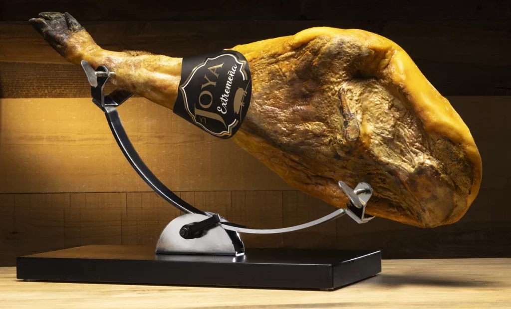 Este jamón, con su peso de 6 a 7 kg, no solo es una delicia, sino que también luce espectacular en cualquier mesa, convirtiéndose en el centro de atención en cualquier cena o reunión. La Joya Extremeña tiene una apariencia noble y tradicional que hará sentir a tus invitados como en un banquete de lujo.