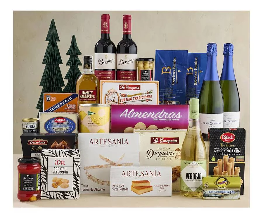 Quien desee armar una cesta navideña para regalar o disfrutar, se puede encontrar con una serie de alimentos como embutidos ibéricos, quesos semicurados, conservas de calidad, vinos y cavas. Entre estas variantes, se incluyen el chorizo y salchichón ibéricos Benito, el queso semicurado Albéniz, paté Zubia o de bonito del norte en escabeche de El Consorcio. Para los amantes de los dulces, este lote también posee turrones de chocolate, duro o blando, trufas de cacao y un chupito de escocés. Este magnífico crisol de alimentos se puede encontrar en la página oficial de la tienda, a un precio de rebajas de 59 euros.