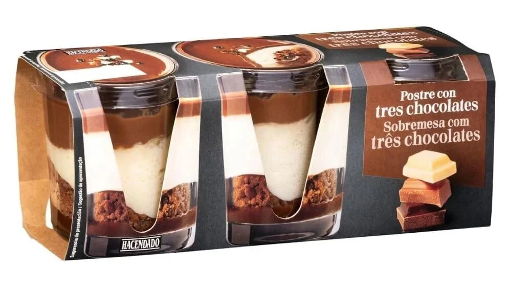 Uno de los productos estrella es el postre 3 chocolates Hacendado, un verdadero placer para los amantes del cacao. Este postre combina tres capas de chocolate con una textura suave y cremosa que conquista a todos. Sus ingredientes principales incluyen azúcar, grasas vegetales de palma, nata y cacao en polvo, entre otros, ofreciendo una experiencia completa en cada cucharada.