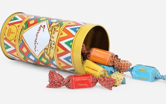 Los torroncini surtidos de Dolce & Gabbana combinan exquisitas almendras y miel en un elegante surtido de pequeños turrones. Con su presentación en una lata de diseño exclusivo, estos dulces son ideales para sorprender a tus seres queridos con un toque de lujo. Tus invitados alucinarán.