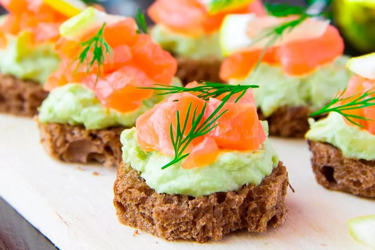 Otra opción que nunca falla para tus tapas navideñas son los montaditos de salmón ahumado y aguacate. Utiliza rebanadas de pan tostado como base, unta un poco de aguacate triturado con un toque de limón, y coloca encima una loncha de salmón ahumado. Decora con eneldo fresco o unas huevas de pescado para darle un aire más festivo. Este montadito no solo es delicioso, sino que también aporta frescura y color a la mesa.