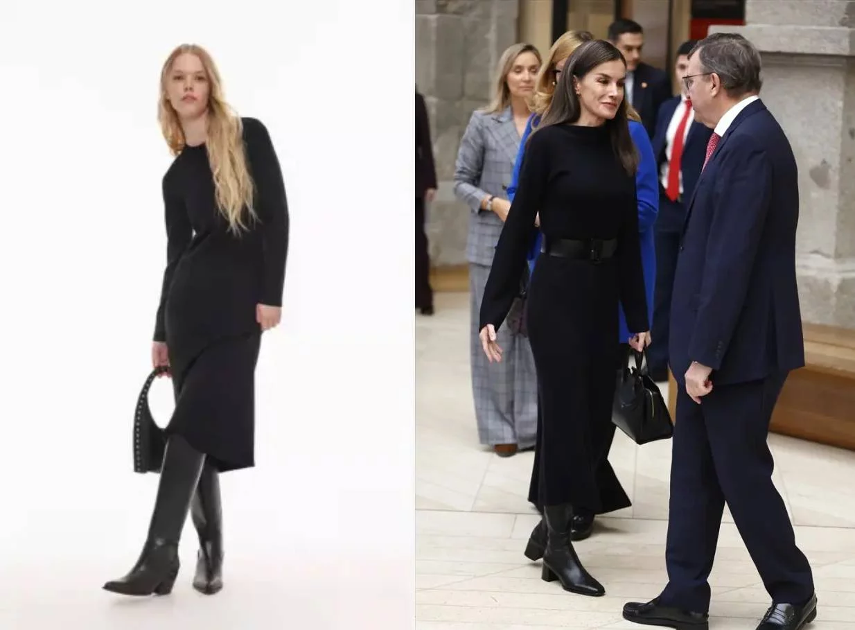 La tienda hermana de Zara también tiene diseños que la reina Letizia usó en otras ocasiones. Uno de los más recientes es el que la monarca usó para el 25 aniversario de la Fundación Aequitas, en el que también eligió un diseño corte midi pero negro y de punto. Este diseño es, sin dudas, la tendencia de la temporada, cuyas versiones más asequibles se pueden encontrar en Lefties.