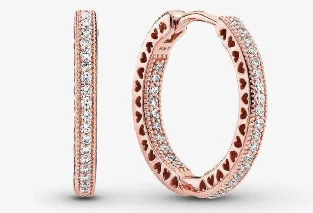 Tras explorar la oferta de TOUS, entramos también un poco en el catálogo de Pandora, donde encontramos otra joya imprescindible: los pendientes de aro con corazones de la colección Pandora Signature. Esta pieza, fabricada con una aleación única de metales y recubierta con un baño de oro rosa de 14 kt, emana un romanticismo que enamora a primera vista.