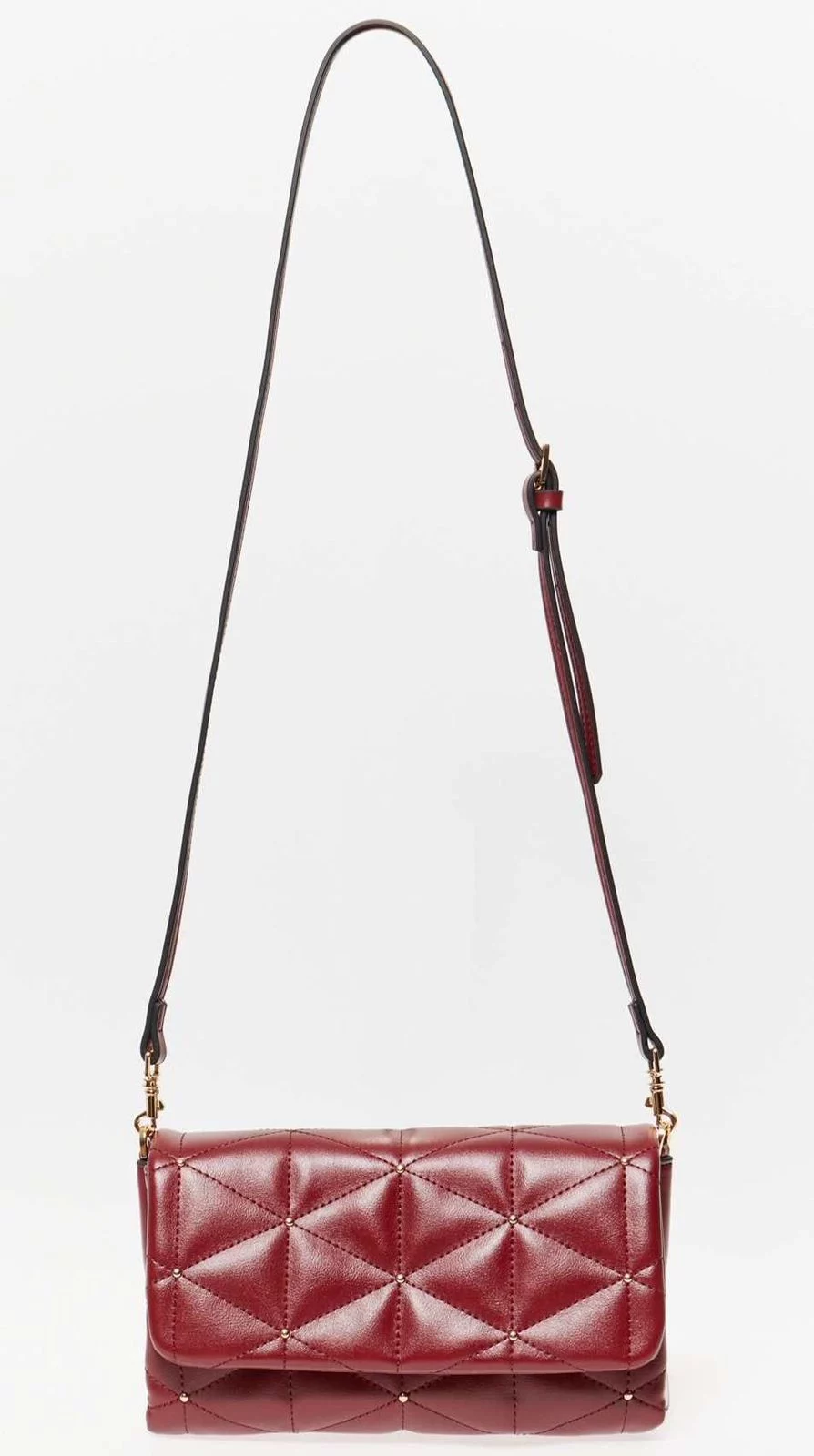 Para quienes prefieren un accesorio más pequeño, la bandolera tachas de Sfera es la elección ideal. Este modelo destaca por su exterior de piel sintética con efecto acolchado y un elegante diseño adornado con pequeñas tachuelas. Su asa larga, ajustable y extraíble, permite llevarlo como bandolera o bolso de mano, adaptándose a diferentes estilos y ocasiones.