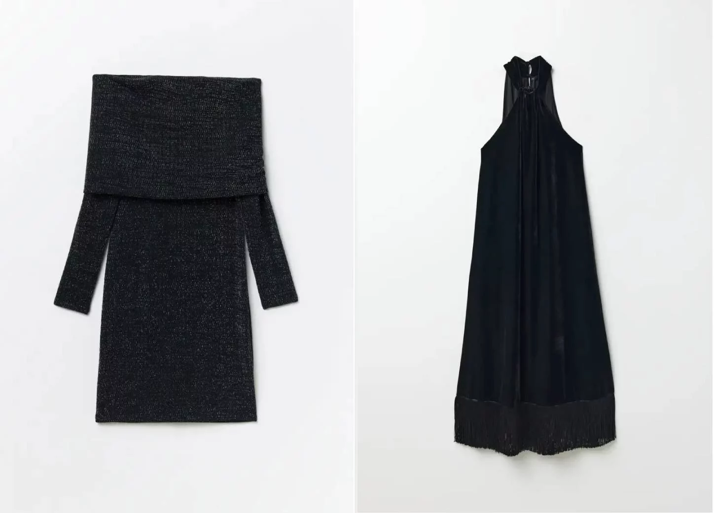 Una de las variantes recomendadas por los expertos es el vestido tejido de terciopelo y bajo enflecado, que se vende en la tienda online a 39.99, una opción sencilla y elegante para las que eligen el bajo perfil pero con un toque de glamour y distinción. Siguiendo esa línea también se puede encontrar el «vestido mini con brillos», una variante en tendencia que tiene un detalle a la moda que todas querrán tener: el corte off shoulders (hombros descubiertos) que se convirtió en el preferido. El precio es de 29.99 y es el ideal para los eventos nocturnos.