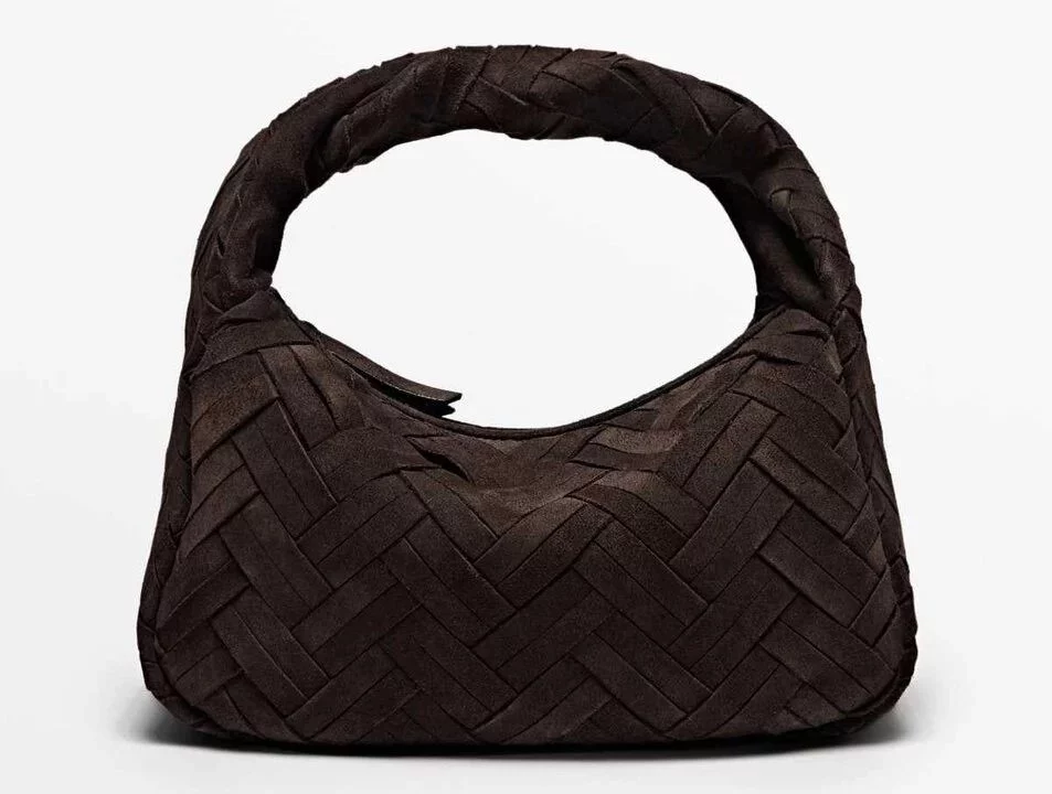 Uno de los grandes protagonistas de esta temporada es el bolso de mano trenzado de piel serraje. Con un diseño rectangular y bordes redondeados, este modelo en color marrón oscuro se ha convertido en uno de los favoritos de los clientes de Massimo Dutti. Su asa de mano integrada y su acabado suave lo convierten en una pieza extremadamente práctica y elegante. Además, su confección con piel ovina de alta calidad y su textura trenzada aportan un toque único y sofisticado.