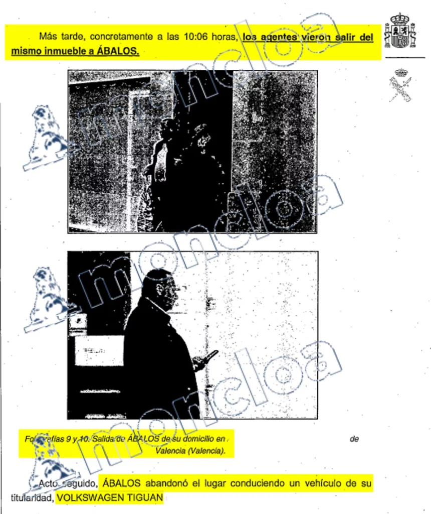 Luego explica Ábalos que los efectivos de la UCO «siguieron a Joseba hasta mi domicilio particular (…) observando como Joseba portaba el sobre blanco, tamaño A 4, y observando minutos más tarde como abandonaba mi domicilio sin portar ya el sobre».