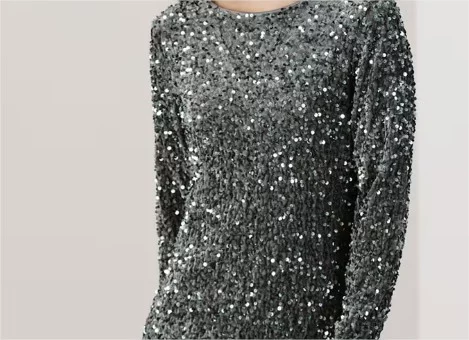 El vestido de fiesta de lentejuelas en color gris oscuro es la definición de glamour. Su diseño brillante y ajustado realza la figura y lo convierte en una pieza perfecta para deslumbrar en cualquier evento.