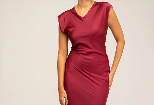 El vestido largo de raso en color burdeos es una prenda ideal para lucir en las celebraciones más especiales. Su diseño fluido y elegante, combinado con el detalle ajustable en la espalda, lo convierte en una opción cómoda y sofisticada que realza la silueta.
