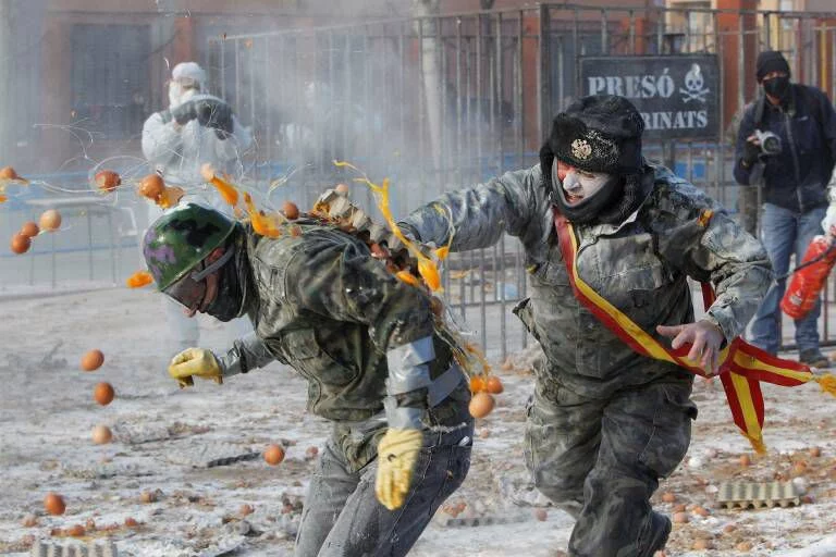 Otro momento importante de la celebración es el desfile de los tapats, personajes enmascarados que recorren las calles haciendo travesuras. Su humor ligero y su interacción con el público le dan un toque único al día, culminando en el simbólico Ball del Virrei. En este acto, los Enfarinats ceden el poder, cerrando una jornada marcada por la unión entre tradición y modernidad.