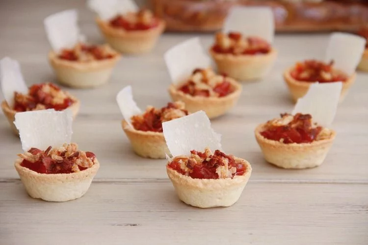 Rellena las tartaletas con la mezcla de queso y pimientos, y hornéalas durante unos minutos más para que el queso se derrita ligeramente. Sirve las tartaletas calientes o a temperatura ambiente, decoradas con un poco de perejil fresco. Este aperitivo no solo es fácil de preparar, sino que también es visualmente atractivo y delicioso, lo que lo convierte en el inicio perfecto para tu cena de Nochevieja.