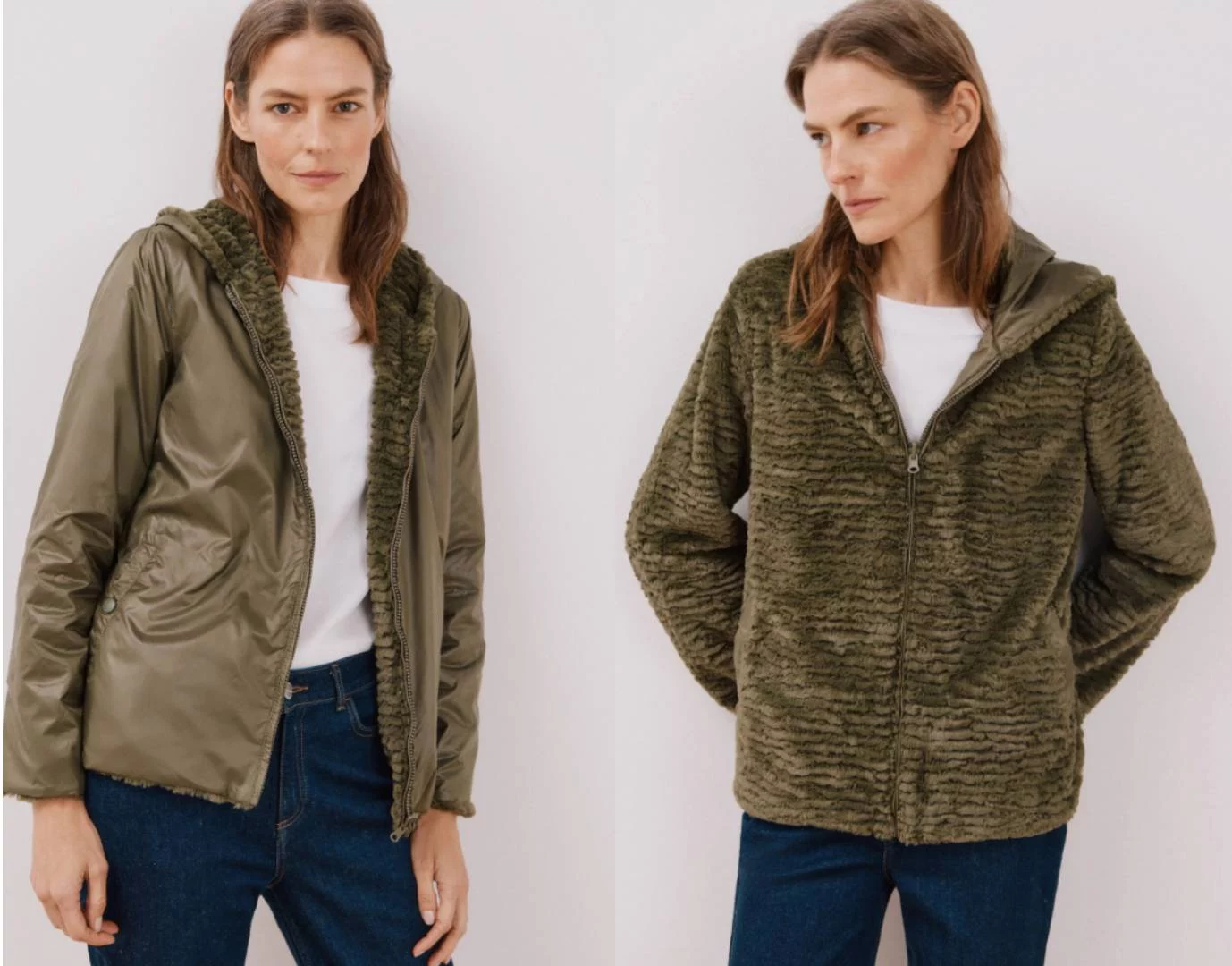 Uno de los diseños más vendidos de este último tiempo es el de la cazadora de pelo reversible. Un modelo de extrema calidad corta, en color verde caqui (también se puede encontrar en negro y marfil) y está revestida con forro de pelo sintético tan suave. Uno de los lados es igual a las clásicas bomber, que hace al tejido impermeable. En la actualidad su valor es de 53.99 euros y es una de las más codiciadas de la tienda por lo que, quien quiera tenerla, deberá correr a comprarla.