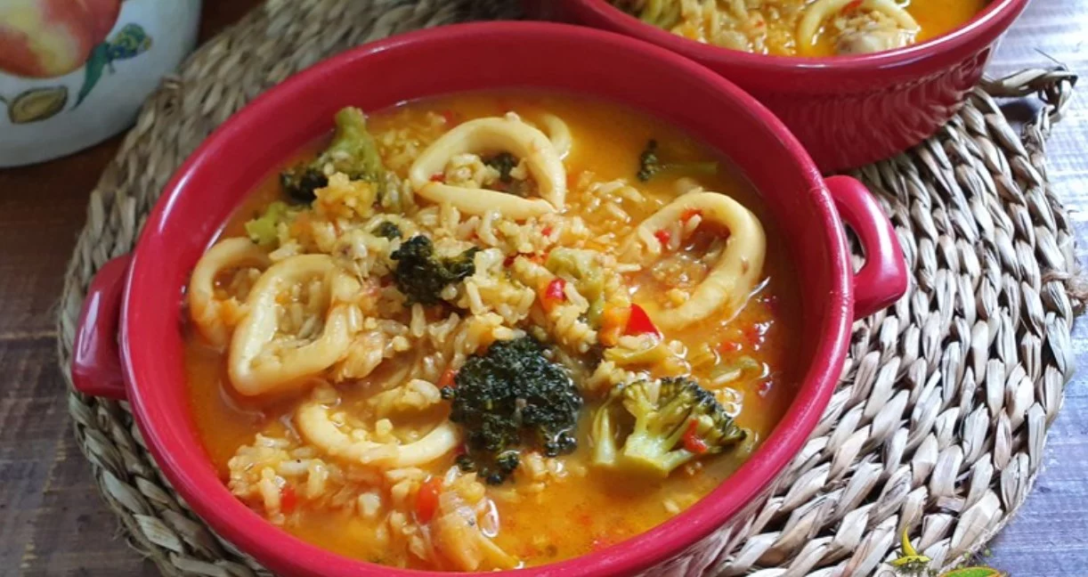 Sumérgete en un universo de sabores marinos con este exquisito arroz caldoso de calamares y langostinos, una receta que te transportará a la costa mediterránea con cada cucharada. Más que un simple plato, es una experiencia sensorial que deleita el paladar con la suavidad del arroz, la ternura de los calamares y la jugosidad de los langostinos, todo ello envuelto en un caldo aromático que concentra la esencia del mar.