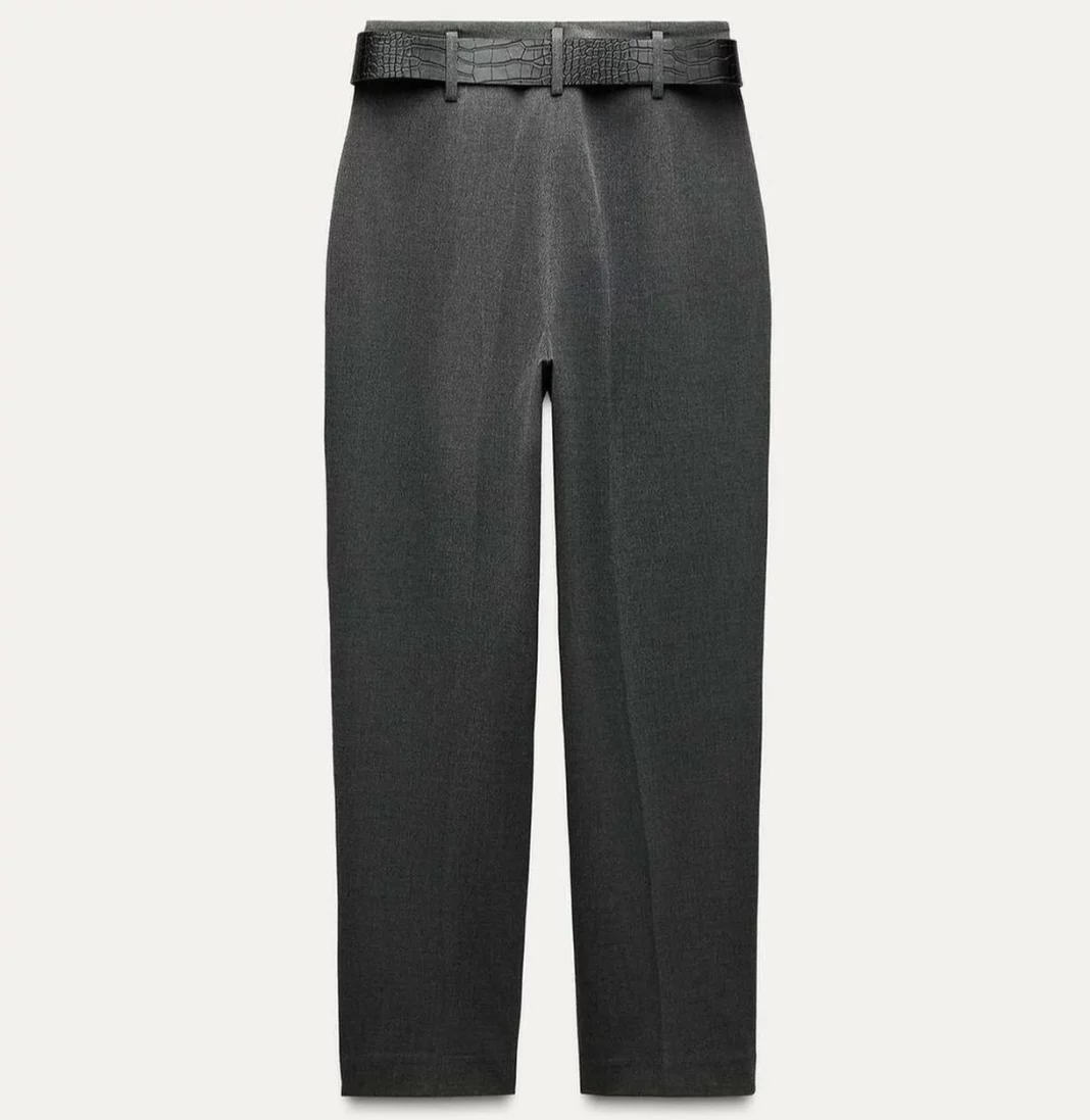 Otro de los grandes protagonistas de esta colección es el pantalón carrot con cinturón, una propuesta que redefine la silueta con un diseño de tiro alto y detalles de pinzas. Zara ha logrado captar la esencia de la sofisticación en esta prenda, gracias a su cinturón grabado que le da un toque distintivo. Los bolsillos delanteros no solo aportan funcionalidad, sino que también refuerzan el carácter práctico y chic del diseño. Su pernera recta y el cierre frontal con cremallera, botón interior y gancho aseguran un ajuste cómodo y favorecedor, convirtiéndolo en la opción perfecta para el día a día.