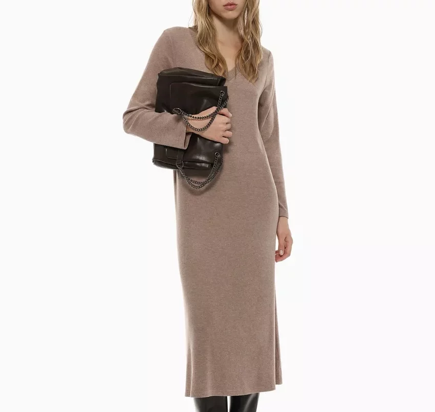 Hay vestidos con cuello alto, para el frío, escote en V, en incluso con cinturones para definir aún más la cintura. Además, esta prenda es pasada de cómoda, y fácil de elegir y combinar con otros accesorios. Un ejemplo de esto es el vestido de punto cortado en color beige claro que podrás encontrar por solo 17,99 euros.