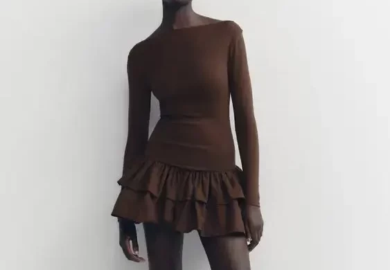 El color, es uno de los más apetecidos durante la temporada pasada y las que vienen; un marrón muy llamativo y especial, que a pesar de considerarse en muchas ocasiones un tono neutro, de cierto forma también resalta y se convierte en el protagonista de todos los eventos. Para llevarlo un poco más casual o de forma diferente puedes agregarle un jersey y hacerlo parecer que fuera únicamente una falda. Este vestido lo encontrarás en Zara por solo 22,95 euros.