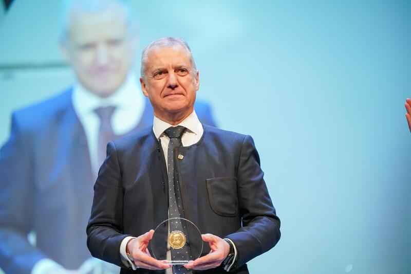 Iñigo Urkullu, que antes de subirse al escenario, ha afirmado que el galardón que hoy se le otorga «no es personal, no es particular», sino que hace partícipe de él a todas las personas que le han acompañado en su andadura política, ha insistido en ello también durante su discurso.