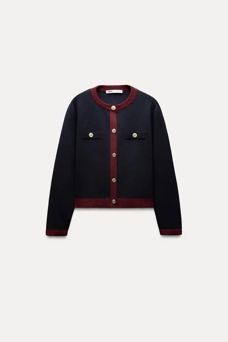 Para quienes les gusta arriesgarse un poquito más y están cansadas de siempre usar los mismos abrigos o chaquetas de un solo tono, Zara ha traído esta prenda que combina el azul marino y el burdeos. El diseño perfecto con un equilibrio entre lo clásico y lo innovador, para aquellas chicas que quieren salirse un poco del estándar tradicional pero que tampoco les gusta exagerar ni verse excesivas. Este diseño ofrece una alternativa elegante, versátil y atemporal pero dejando atrás un poco lo convencional.