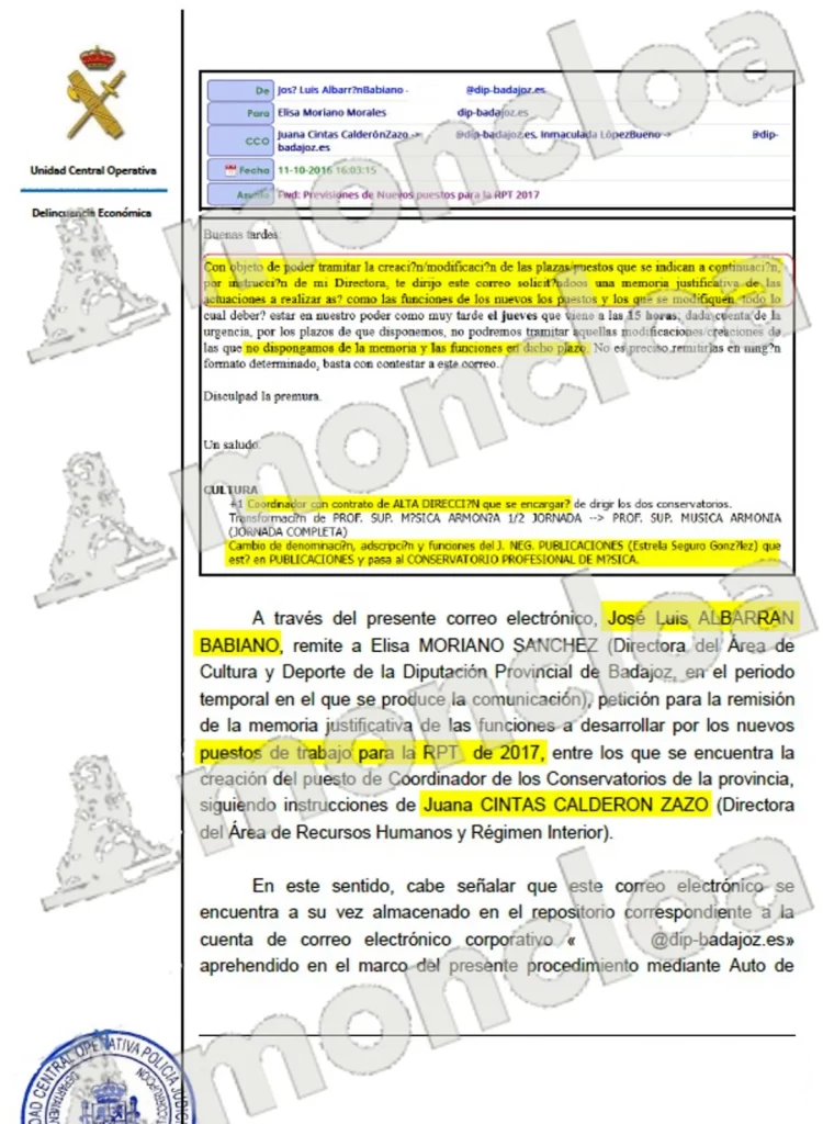 Tras los funcionarios declararán Álvaro Jaén Barbado, ex secretario general de Podemos en Extremadura y actual concejal de este grupo en el Ayuntamiento de Cáceres y Francisco Serrano Murillo, periodista de la Diputación Provincial de Badajoz y representante del sindicato CSIF, que se opuso a la creación de la plaza en la mesa de negociación celebrada el 26 de octubre de 2016. El primero denunció públicamente y en la Asamblea de Extremadura la creación del puesto y el segundo se opuso al mismo en la mesa de negociación laboral de la propia Diputación.