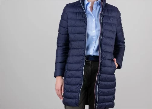 Este plumífero largo es la opción perfecta para quienes buscan abrigo sin renunciar al estilo. Su diseño acolchado y su cierre de cremallera garantizan una protección total contra el frío, mientras que su tonalidad en azul marino lo hace fácil de combinar con cualquier look de invierno.