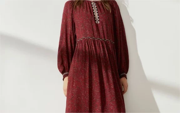 Vestido largo con tiras bordadas en la web de El Corte Inglés