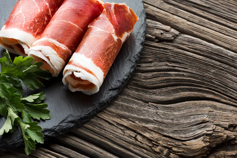 La textura jugosa y la intensidad de su sabor hacen que este jamón sea incomparable. Al cortarlo en finas lonchas, se revela un maravilloso contraste entre la carne rojiza y la grasa perlada, que se derrite lentamente en el paladar. Es precisamente esta combinación lo que lo convierte en un manjar codiciado por chefs y gourmets de todo el mundo.