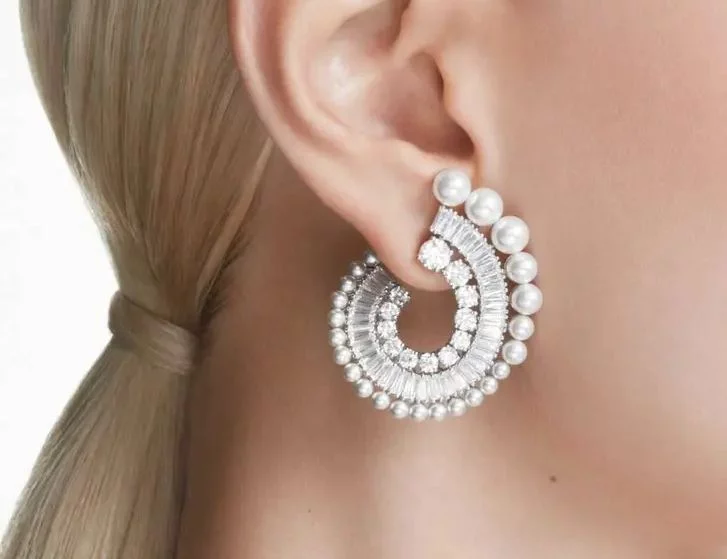 Como muchos saben, las coletas altas son como una insignia de Ariana Grande, así que, junto a Swarovski, ha creado los pendientes perfectos para llevar con este look. Estos pendientes son de un tamaño realmente grande, cubriendo gran parte de la oreja, pero resaltando esa zona del rostro. Un aspecto muy llamativo de esta pieza es su forma redondeada que parece una caracola.