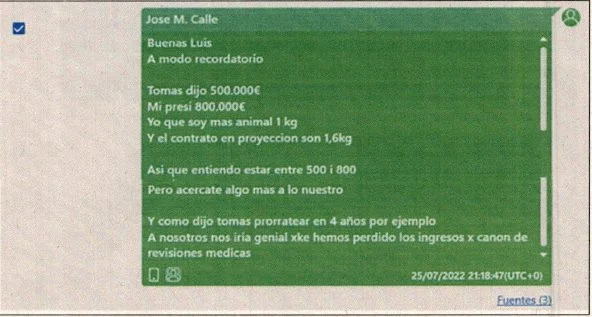 Según señala la acusación, en dicha conversación se hace referencia a la existencia de unas negociaciones entre el que fuera abogado externo de la RFEF Tomás González Cueto y Soteras en relación «con la plataforma de gestión digital de licencias deportivas NOVANET».