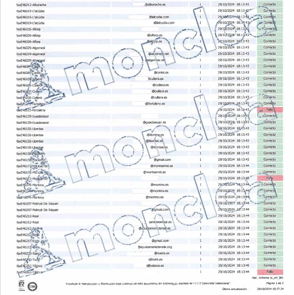 Entre los más de cincuenta mails enviados y faxes por el CECOPI hubo hasta tres fallos de comunicación: Yátoba, Fortaleny y Montserrat, según la comunicación remitida a la jueza. El Ministerio de la Transición Ecológica, en manos de Teresa Ribera, ausente en el CECOPI y en Valencia, puso en el foco por el riesgo de rotura de la presa de Forata.