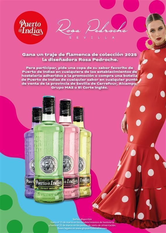 Puerto de Indias, la marca premium líder del segmento de ginebras saborizadas en España y pionera en crear la primera ginebra de fresas naturales del mundo, se vuelve a aliar un año más con la diseñadora de moda flamenca Rosa Pedroche y juntos van a regalar 5 trajes de flamenca de su colección 2025 «Andalusí» para la Feria de Abril de Sevilla.