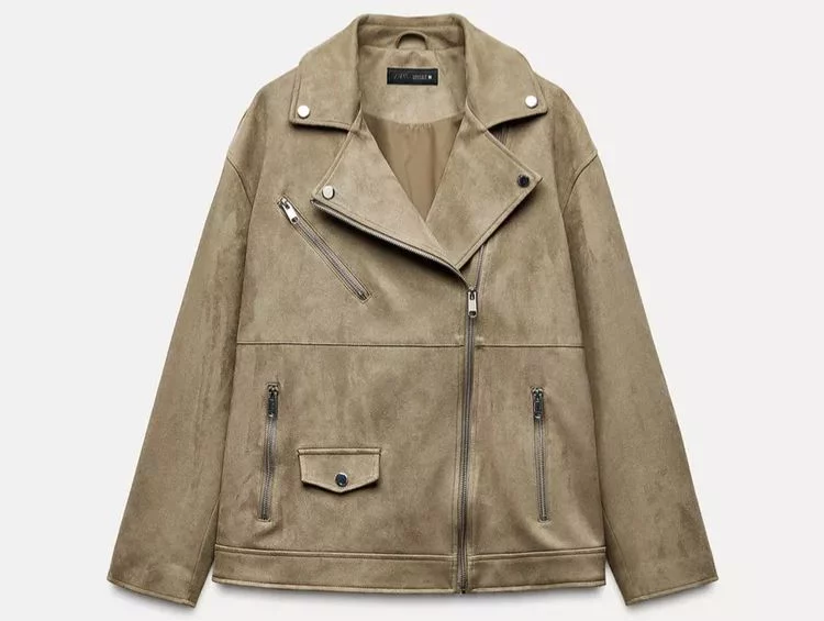 La biker de ante de Zara se ha convertido en una prenda que nunca pasa de moda y que se reinventa constantemente. En esta ocasión, Zara ha apostado por este clásico con un diseño que tiene el balance ideal entre elegancia y rebeldía. Su cuello solapa, sus cremalleras metálicas y su corte cruzado la convierten en una pieza perfecta para llevar en cualquier momento, desde un atuendo relajado con vaqueros hasta una combinación más elegante con falda midi y botas altas.