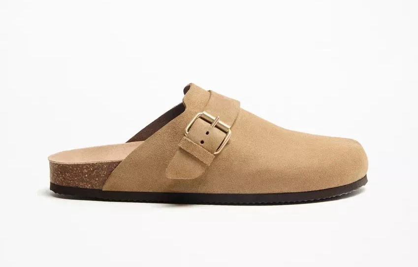 Además, no se trata solo de apariencia. En cuanto a materiales, Lefties también ha hecho lo suyo aquí, ya que estos zuecos están hechos de cuero de ante de vaca 100% con una suela de EVA diseñada para hacer el caminar más cómodo. Esto significa que no solo es una opción asequible, sino también cualitativa. Con esa clásica hebilla metálica, sin duda, notamos la inspiración de ‘Birkenstock’.