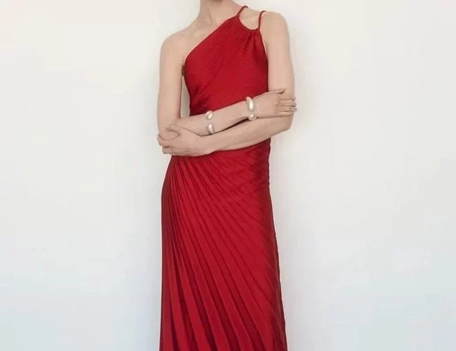 Una opción igual de discreta y natural, pero con personalidad, una propuesta diferente sin cerámica, como nunca, es el vestido rojo plisado que Mango Outlet también ofrece. El grado asimétrico lo hace moderno, y la fuerza del rojo, seguro te hará destacar. El detalle plisado en la falda ayuda a alargar la figura y aporta una gran textura al atuendo.