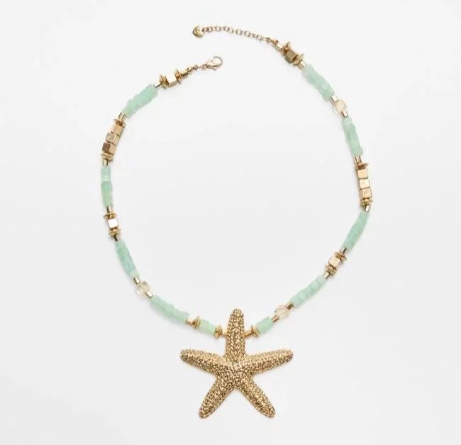 El verano se acerca con las vacaciones y Stradivarius no quiere perder la oportunidad, así que presenta accesorios relacionados con el mar, los días soleados y una paleta azul. Este collar con un colgante de estrella de mar es algo divertido y luminoso que complementará el estilo de cualquier look. Ideal para conjuntos sencillos, este collar luce mejor combinado con camisetas lisas o tops de corte limpio.