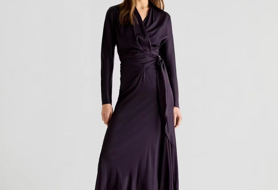 Para una ocasión un poco más sofisticada, este modelo satinado en un tono púrpura intenso puede ser tu mejor elección. Con un 40% de descuento en El Corte Inglés, este vestido tiene ese brillo sutil que agrega algo especial al atuendo, sin ser llamativo. Es 100% viscosa, por lo que se drapea hermosamente y tiene un diseño envolvente que es bastante favorecedor para todos los cuerpos.