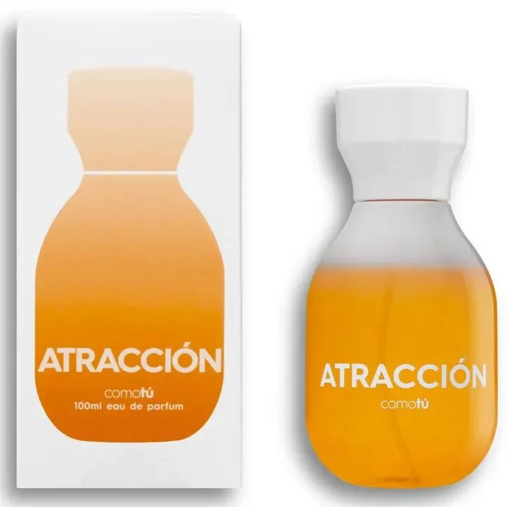 Cuenta con azafrán, cedro, haba tonka y jazmín, una cálida mezcla que perdura desde el primer momento. La presentación está en línea con la habitual de la colección Como Tú, con su característico frasco de 100 ml en tonos blancos y naranjas, fácilmente reconocible. Como Tú Atracción, es la nueva compra obligatoria de perfumes, que por solo 8 euros se ha convertido en un básico de muchos.