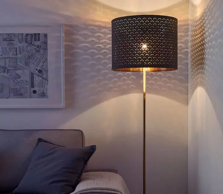 Para quien necesita una lámpara que también ilumine toda una habitación, Ikea ha lanzado la serie NYMÖ-SKAFTET, que resuelve todo. Su pantalla negra perforada crea efectos de luz únicos en la habitación, y la base color latón aporta ese toque chic y elegante tan buscado en interiores contemporáneos. Esta no es solo una lámpara funcional, es arte luminoso.