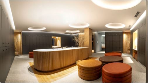 Los vestuarios han sido concebidos como extensiones del espacio premium del club. Con una paleta cromática equilibrada, materiales nobles y elementos naturales como árboles secos en las zonas comunes, estos espacios buscan transformar la rutina de entrenamiento en un ritual de bienestar.