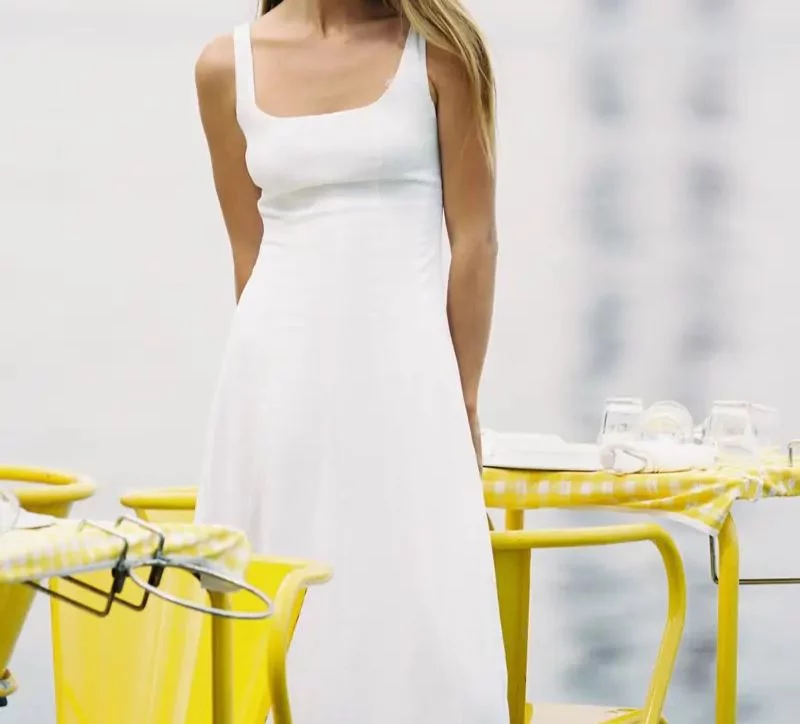 Zara ha entendido perfectamente que menos es más, y su vestido blanco de lino lo demuestra a la perfección. Este diseño de corte midi, tirantes finos y líneas depuradas se convierte en la pieza básica que todo fondo de armario necesita. Gracias a su sencillez, este vestido permite infinitas combinaciones, desde un look relajado con sandalias planas hasta un outfit más sofisticado acompañado de tacones y un bolso de mano especial.