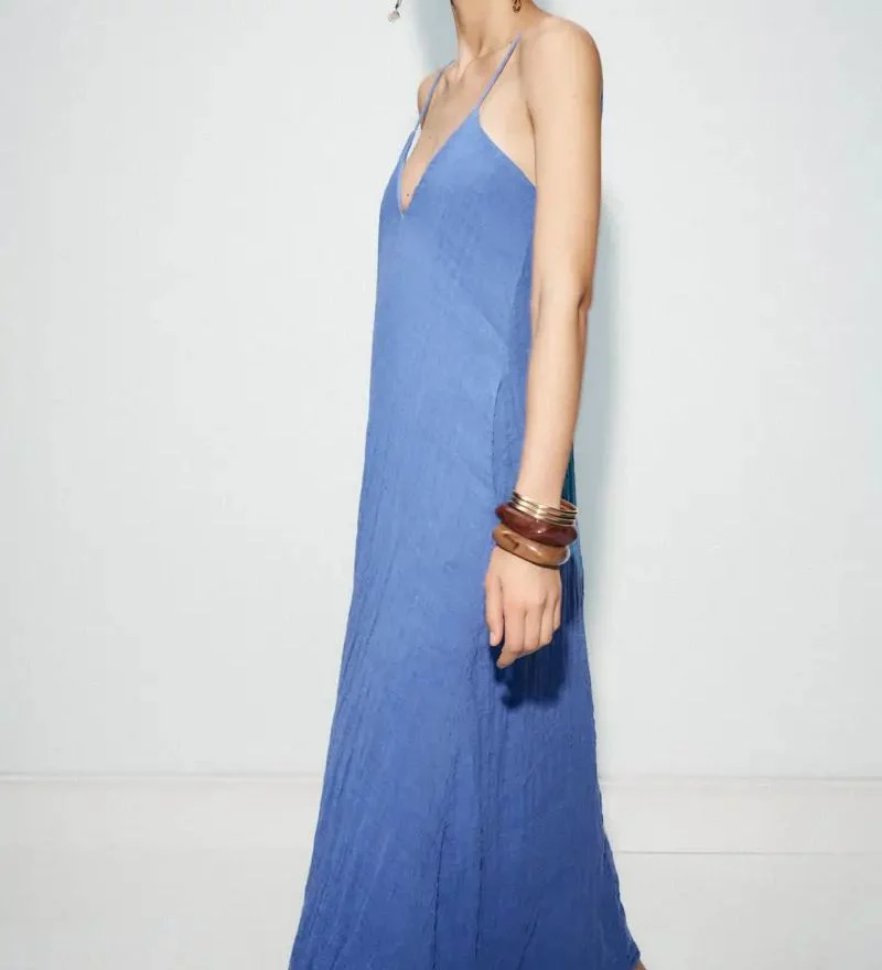 Si hay una tendencia que sigue ganando terreno esta temporada, esa es la de los vestidos lenceros, y Zara no podía quedarse atrás. Su vestido lencero azul de lino es la prueba de que el minimalismo puede ser tremendamente sofisticado. Confeccionado en un tono azul diferente y favorecedor, con un precio de 69,95 euros, este vestido fluido resulta perfecto para marcar la diferencia en la Feria de Abril o en cualquier evento primaveral.