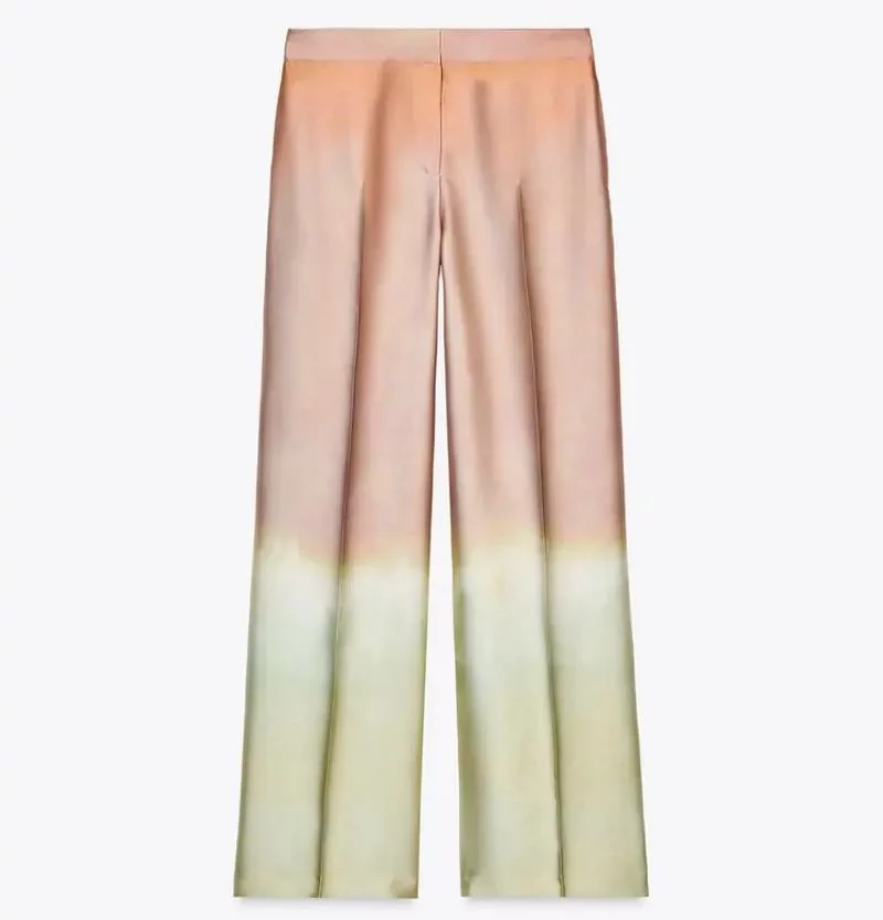 El pantalón de vestir con estampado tie dye es uno de esos diseños que redefinen por completo lo que entendemos por prenda formal. Este modelo combina el efecto desteñido, tan propio de los looks más desenfadados, con un acabado satinado que añade sofisticación. Es perfecto para aquellas que desean destacar con un conjunto que respire elegancia sin caer en lo convencional. Además, su precio de 29,95 euros lo convierte en una opción irresistible para quienes buscan tendencia y accesibilidad.