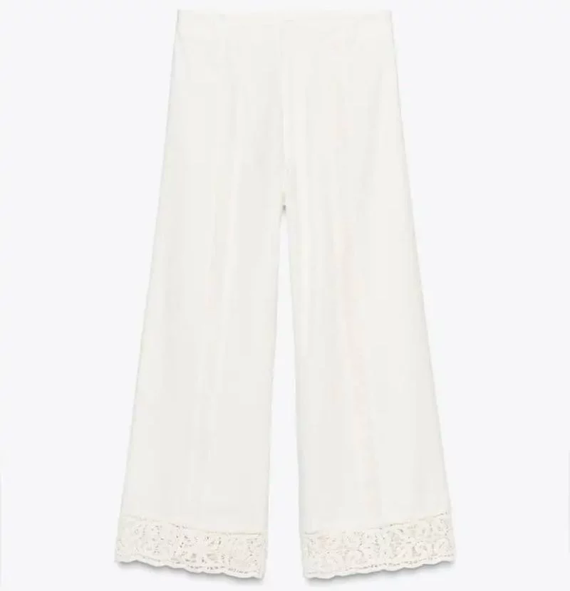 Para quienes aman los detalles artesanales, el pantalón de vestir con detalles de crochet de Zara es una verdadera joya. El blanco, siempre presente en primavera, cobra una nueva vida gracias a los adornos de crochet en la pernera y el bajo, que aportan un aire bohemio y sofisticado a partes iguales. Esta pieza refleja la apuesta de Zara por reinterpretar los clásicos a través de toques innovadores y actuales.