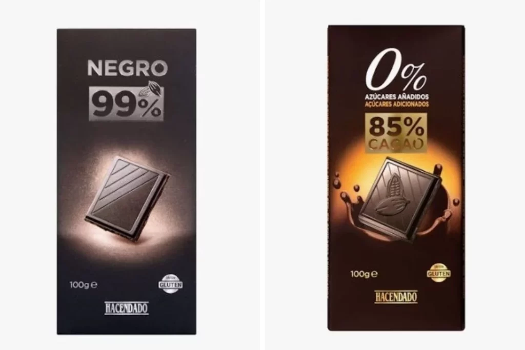 Otra opción excelente es el 99% cacao negro Hacendado a 2,70 euros, sin azúcares añadidos, lo que lo convierte en una elección perfecta para quienes buscan una opción más pura y beneficiosa para la salud. Con tan solo un 1% de edulcorantes, esta tentación es ideal para quienes disfrutan de un sabor fuerte y auténtico. Es 99% cacao negro es ideal para combatir los efectos del envejecimiento. Este tipo de chocolate, aunque no es tan dulce como otros, ofrece una experiencia deliciosa y saludable que satisface el gusto por algo dulce sin comprometer el bienestar. Disfruta de un permitido sin culpa que Mercadona tiene para ti.