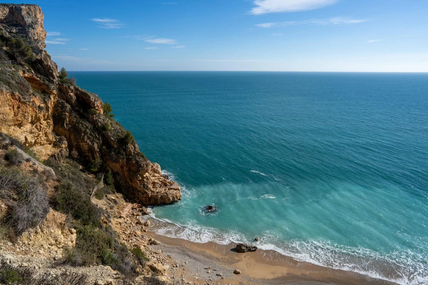 Este rincón, aunque técnicamente fuera de la provincia de Valencia, es una escapada habitual para quienes buscan tranquilidad y conexión con la naturaleza sin alejarse demasiado. La costa de La Renegà se caracteriza por su perfil rocoso, sus aguas cristalinas y su vegetación mediterránea. No hay grandes chiringuitos ni urbanizaciones alrededor, solo el rumor del mar, las gaviotas y algún que otro senderista que descubre el lugar casi por casualidad. Es, sin duda, uno de esos paisajes que enamoran a primera vista.