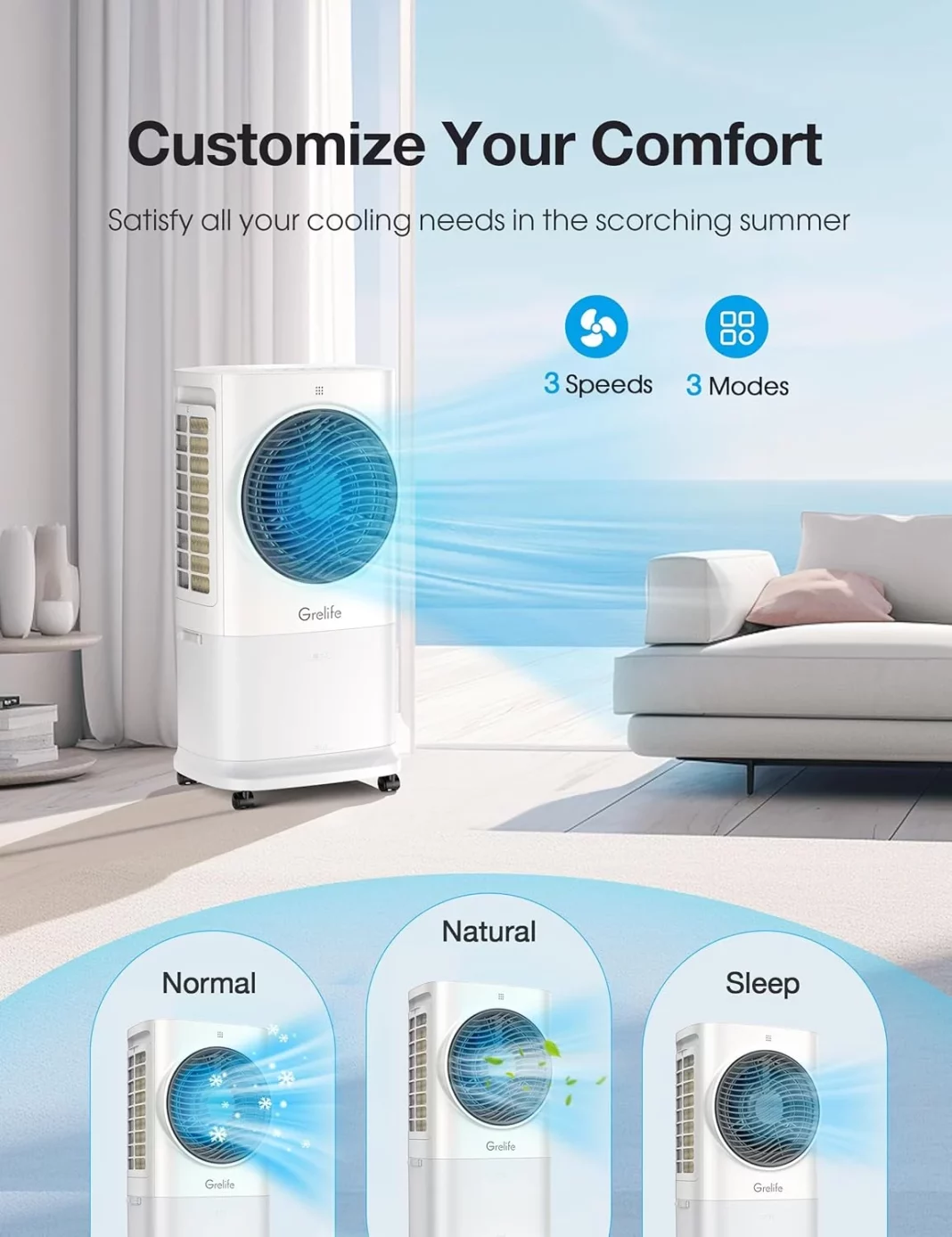 Las características que se mencionan del Grelife son ciertamente atractivas para un aparato de su categoría y precio: capacidad para estancias de hasta 400 pies cuadrados (unos 37 metros cuadrados), un depósito de agua de 1.72 galones (casi 6.5 litros) que promete una buena autonomía, y la inclusión de cuatro paquetes de hielo para potenciar el efecto enfriador. Además, la oscilación de 360 grados y una velocidad de viento de 30 pies por segundo sugieren una distribución del aire fresco bastante eficiente, y su función 3 en 1 (enfriador, humidificador y ventilador) le añade versatilidad. Que la OCU lo destaque significa que, dentro de su segmento de enfriadores evaporativos, ha demostrado un rendimiento superior o una relación calidad-precio especialmente interesante.