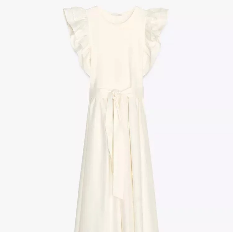 Entre los más destacados, encontramos un modelo con cuello redondo, mangas con volantes y cinturón con lazada, que por 25,95 euros se presenta como el comodín perfecto. Su silueta es fluida pero favorecedora, y ese detalle en la cintura permite ajustarlo al gusto de cada una. Zara ha demostrado una vez más que lo funcional no está reñido con lo sofisticado, y que un vestido blanco bien pensado puede ser mucho más que una prenda básica, puede ser la pieza clave de todo un armario de verano.