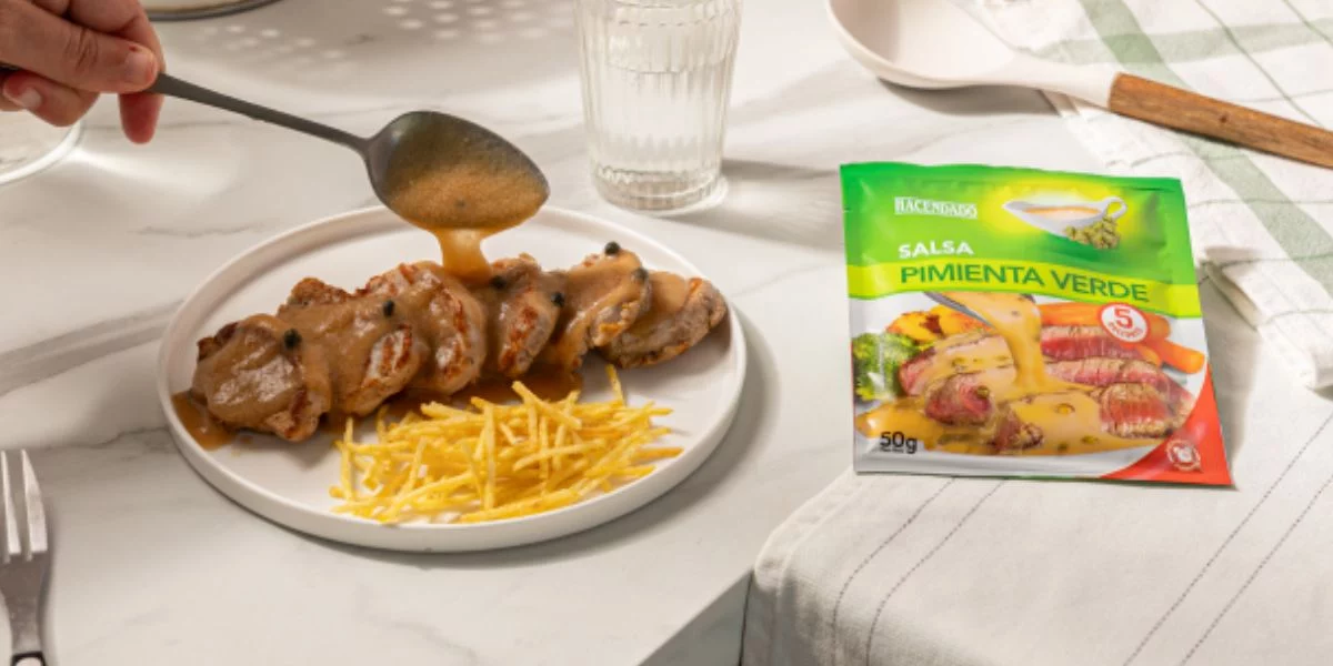 A diferencia del resto de las salsas de Hacendado, esta viene en formato de sobre; y es que este supermercado no da puntadas sin hilo y es que para todos los gustos hay un producto, y en este caso la salsa pimienta verde hace que cualquier platillo se convierta en uno gourmet. Para disfrutar esta delicia de salsa solo disuelve una cucharada generosa de mantequilla o margarina en 200 ml de agua hirviendo.