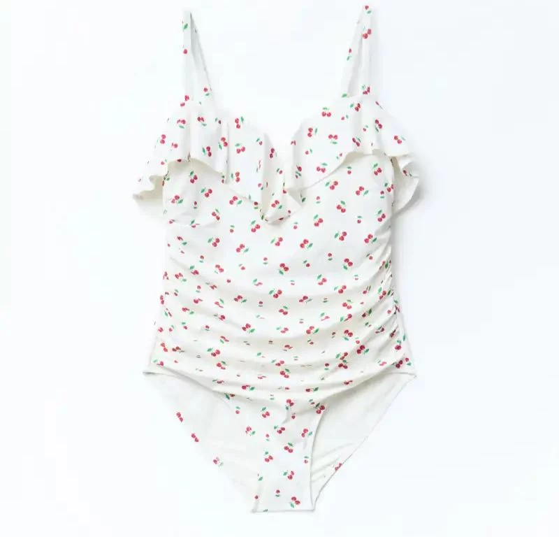 Para las nostálgicas del estilo más romántico, el bañador con volante de Sfera es un flechazo directo. Este diseño tiene tirantes finos, volantes en el escote y un sutil drapeado en los laterales que estiliza la figura sin perder su aire delicado. Todo en él nos lleva a pensar en los veranos de la infancia, con juegos en la arena, helados al sol y tardes infinitas.