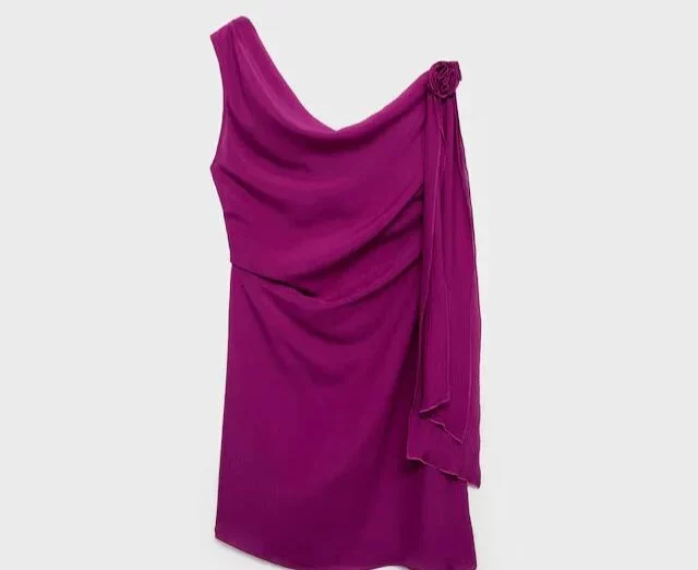 Mango no escatima en detalles cuando se trata de hacer una prenda inolvidable, y este top largo con flor en el hombro es buena muestra de ello. Con una silueta fluida, caída elegante y un punto de dramatismo perfectamente medido, este diseño en color morado está pensado para quienes quieren destacar sin recurrir a lo obvio. La flor, colocada estratégicamente en el hombro, funciona como adorno y como declaración de estilo.