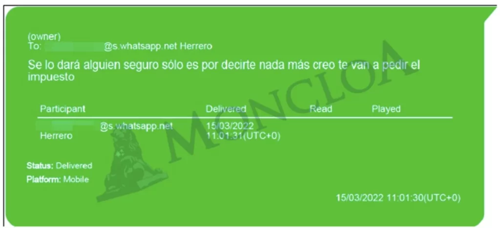 El informe de la Unidad Central Operativa (UCO) de la Guardia Civil recoge casi al final del mismo que «unas semanas después de la reunión entre Koldo y Santos (15/03/2022), Koldo escribió a Javier Herrero para avisarle de que le habían pedido su teléfono desde la gerencia del PSOE (asumida por Ana María Fuentes a iniciativa de Santos unos meses antes), ya que según creía le iban a pedir el «impuesto»».